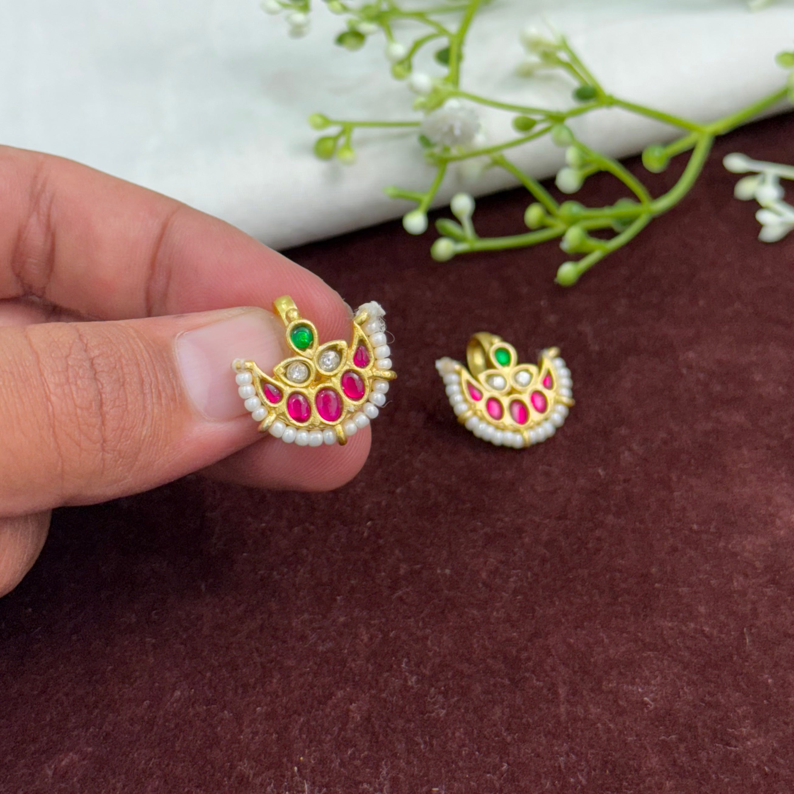 These Kundan Earrings exemplify traditional craftsmanship with exquisite detailing that enhances any formal or festive attire. Featuring carefully set gemstones in a handcrafted gold framework, they offer a timeless elegance that complements both classic and contemporary styles. Perfect for those seeking a blend of heritage and sophistication in their jewelry collection.